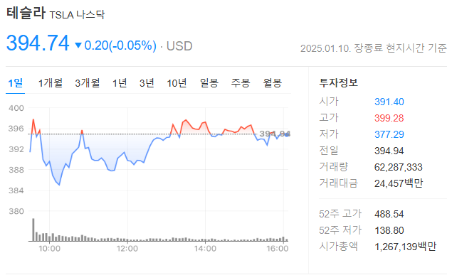 테슬라 실시간 주가확인